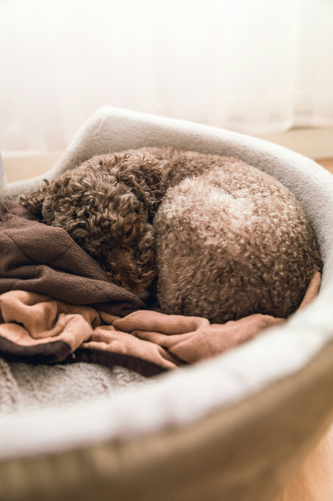 Browse our collection of cozy pet beds made from recycled and natural materials — soft, safe, and sustainable.